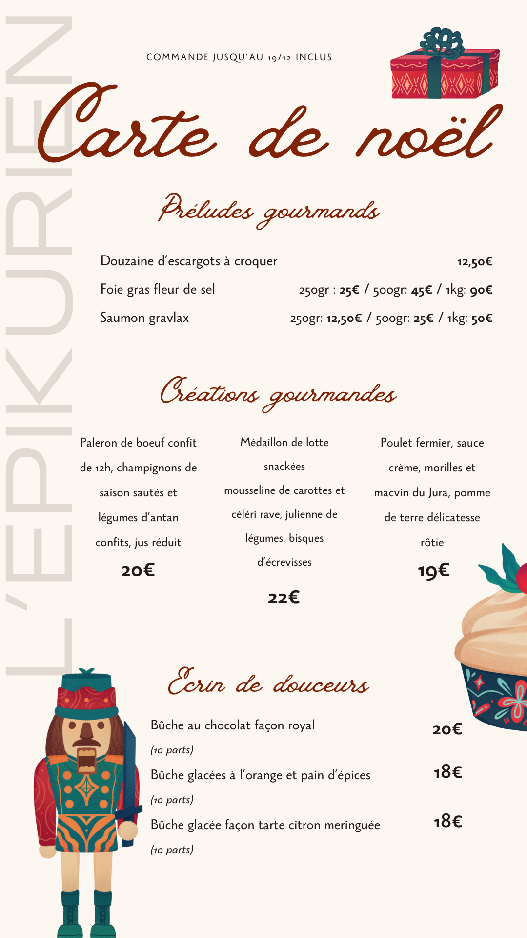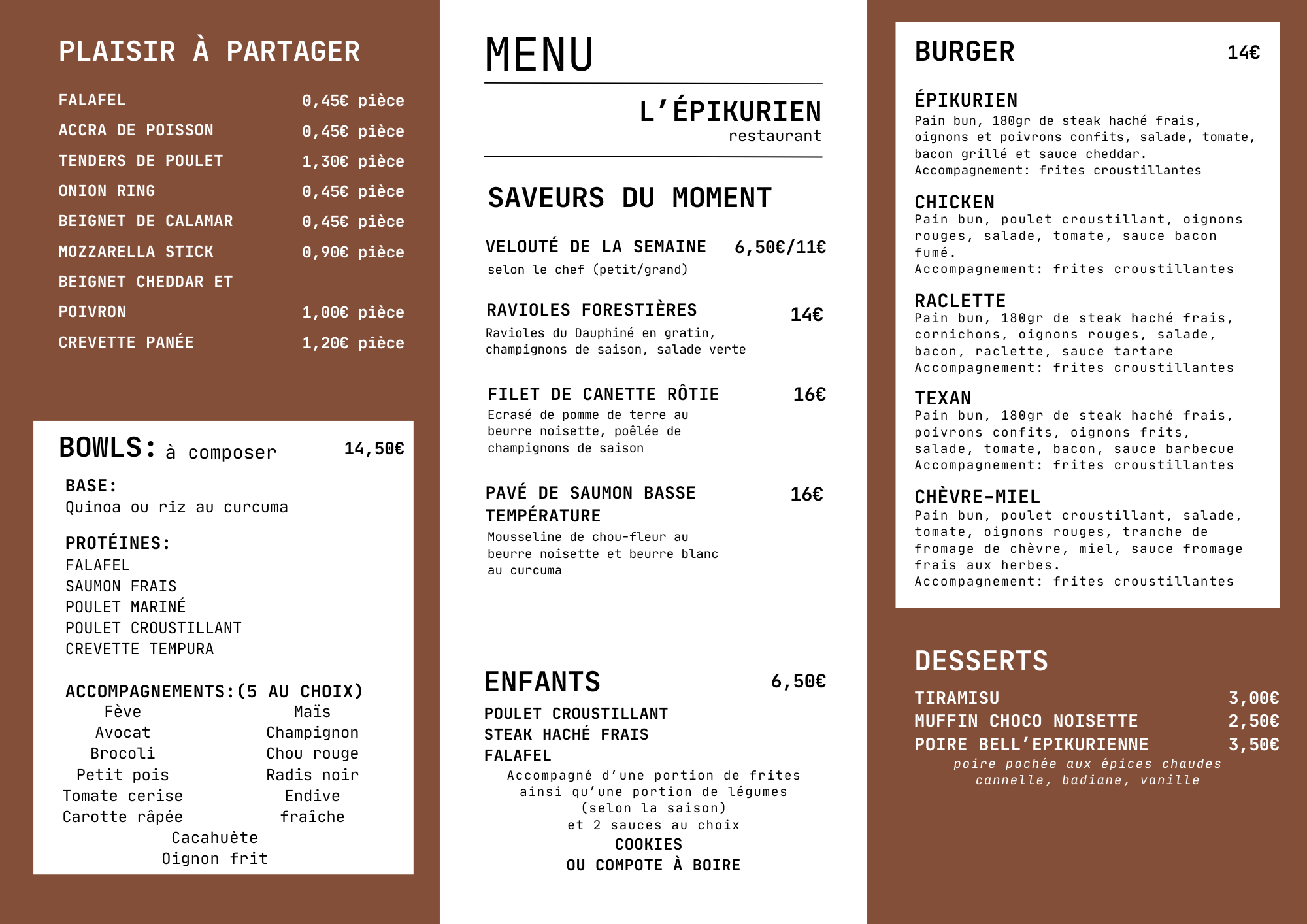 📆 Envie d’un menu sur mesure pour un événement ? L’ÉpiKurien propose également des prestations traiteur, sur devis, pour les particuliers comme les professionnels.